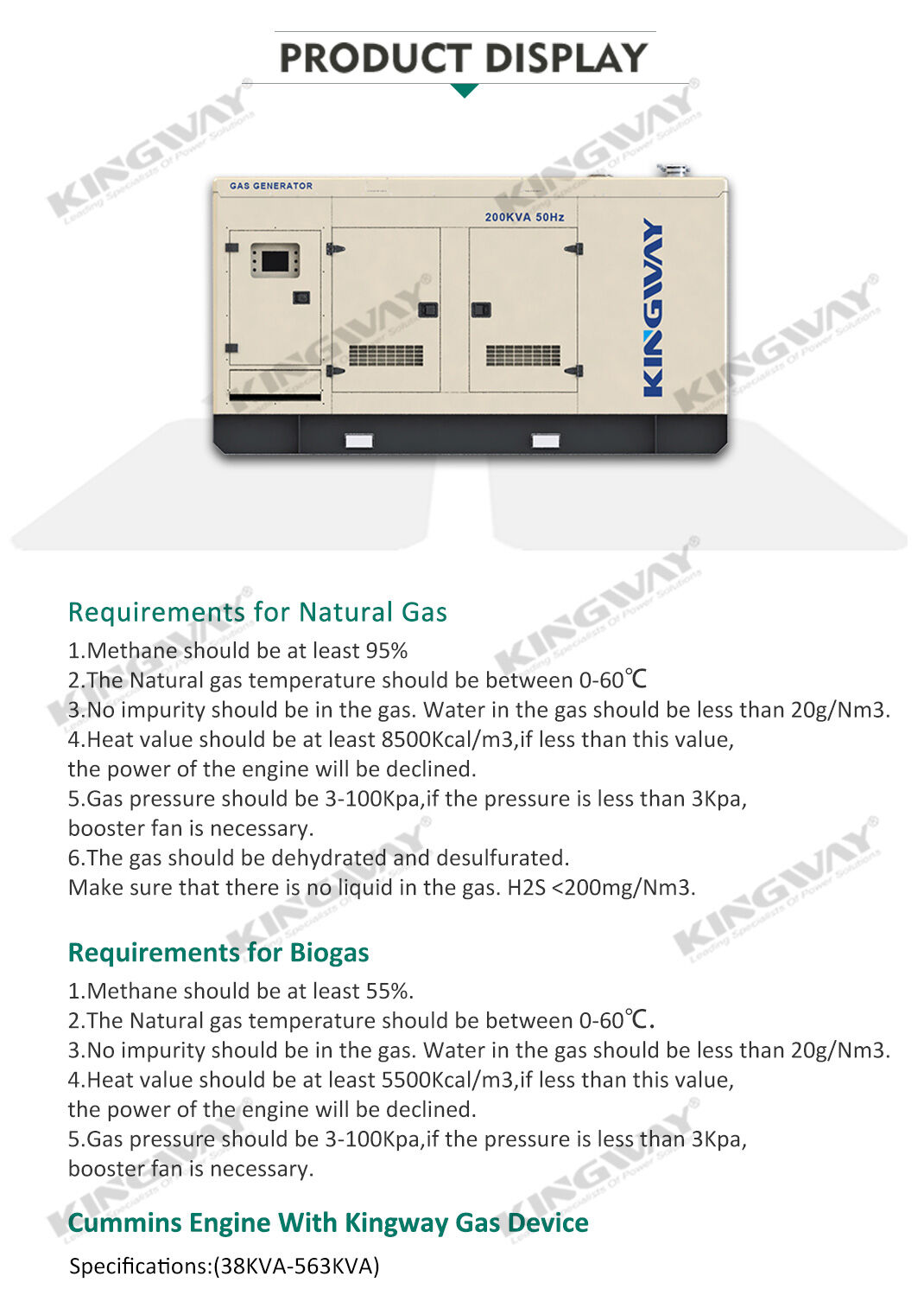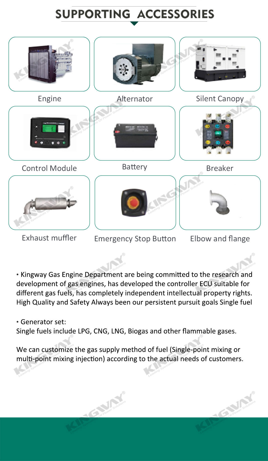 Газогенераторная установка использует газ в качестве топлива, включая 3-фазный газовый генератор, СПГ, генераторную установку на сжиженном нефтяном газе и т. Д. Отдел газовой энергетики Kingway занимается исследованиями и разработками газовых двигателей, разработал ЭБУ контроллера и радиатор генератора, подходящие для различное газовое топливо, имеет полностью независимые права интеллектуальной собственности. Мы можем не только поставить весь газовый двигатель, но и предоставить услуги по модификации 3-х фазного дизельного генератора, а также проектирование, изготовление и монтаж системы газоснабжения (заправочной станции). Благодаря мощной технологии любой тип дизельного двигателя и генератора переменного тока может быть успешно преобразован в однотопливный или двухтопливный газовый двигатель, нет принципиальной разницы в производительности по сравнению с оригинальной машиной, и его можно настроить в соответствии с условиями работы и окружающей среды. поэтому фактический эффект использования превышает оригинальную машину. 3-фазный газовый генератор также популярен на зарубежных рынках.